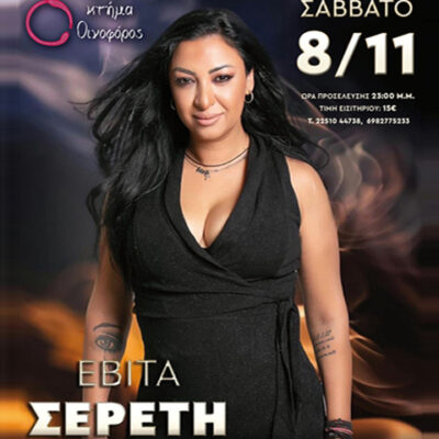 Η νεαρή και πολλά υποσχόμενη ΕΒΙΤΑ ΣΕΡΕΤΗ, σε μία μοναδική εμφάνιση στον Οινοφόρο με εορταστικό χαρακτήρα!